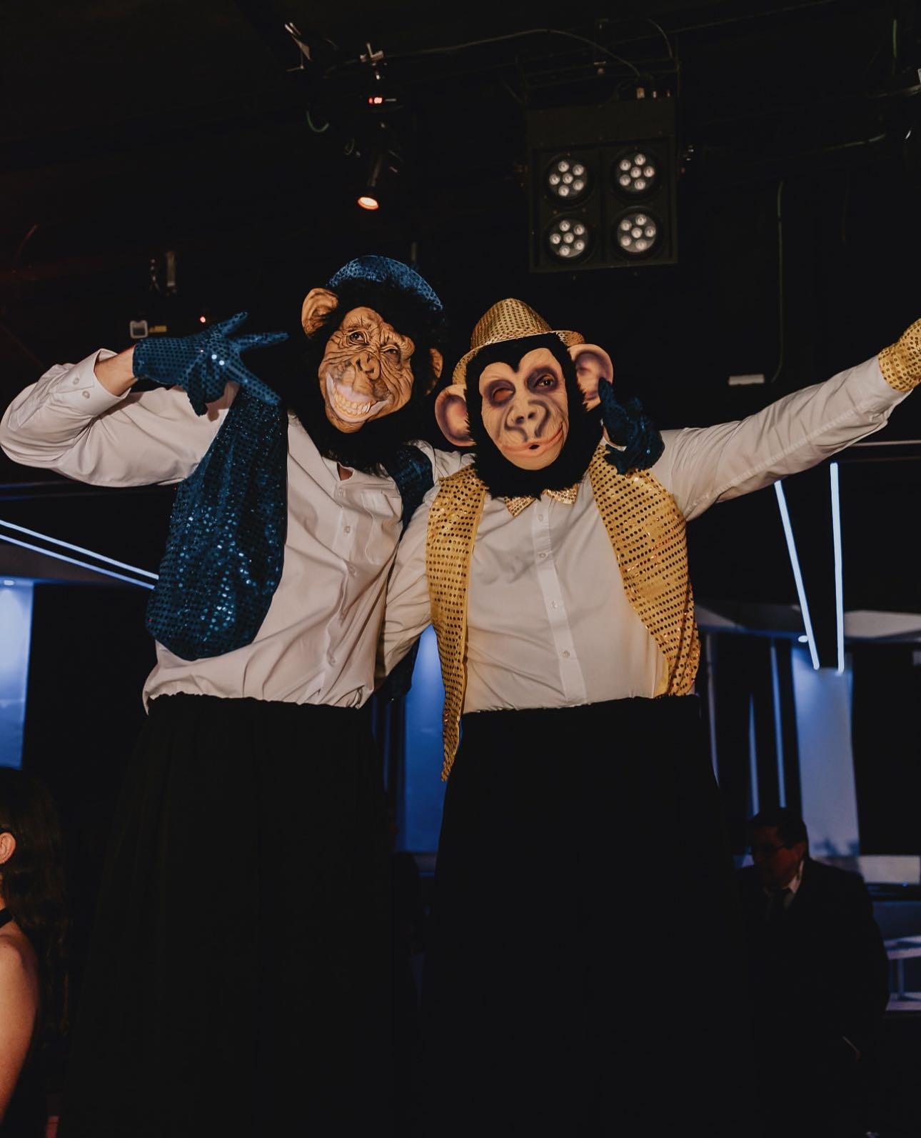 Energía pura y diversión asegurada. Este estilo es ideal para fiestas, ferias o eventos al aire libre, tanto de día como de noche. Los zancudos con trajes de monos animan al público, bailan y convierten el ambiente en una experiencia llena de risas y movimiento.